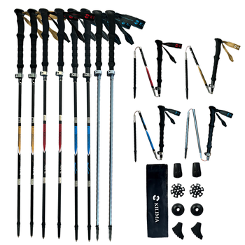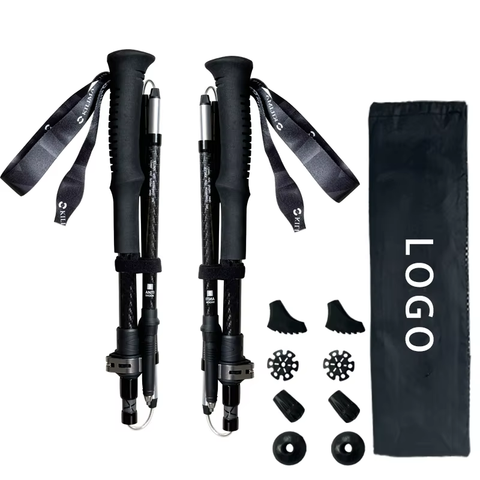 Venta al por mayor de fábrica, bastones ligeros de fibra de carbono para senderismo, ajustables y duraderos