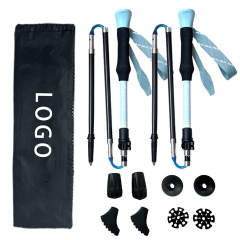 Palos de senderismo plegables de fibra de carbono ligeros al por mayor con asas de EVA adecuados para montañismo profesional